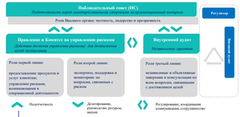 В Обществе управление рисками осуществляется на основе модели «трех линий»: