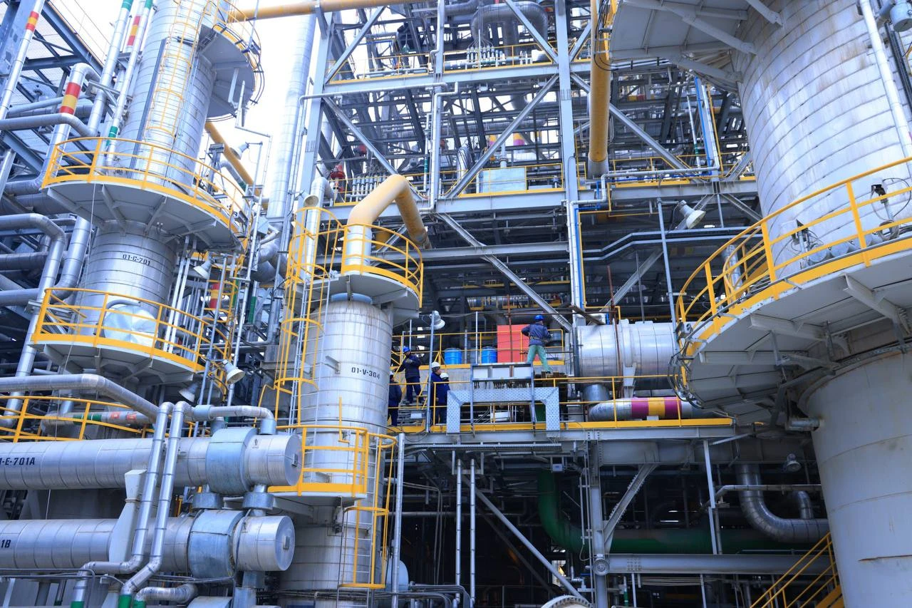 Bugungi kunda ushbu majmuadagi sexlarni bosqichma-bosqich ishga tushirish jarayoni olib borilmoqda. Sanoat korxonalarida murakkab texnologik qurilmalarining ta’mirdan so‘ng faoliyati qayta yo‘lga qo‘yilganda xavfsizlikni ta’minlash maqsadida himoya tizimi — mash’alaning yonishi kuzatiladi. Bu portlash, yong‘in xavfining oldini olish va atmosferaga xavfli gazlar chiqishiga yo‘l qo‘ymaslikka xizmat qiladi. Bunda barcha texnologik jarayonlar mutaxassislar tomonidan doimiy monitoring qilinadi, nazorat-o‘lchov asboblari orqali bosim, harorat va gaz tarkibi kuzatib boriladi.