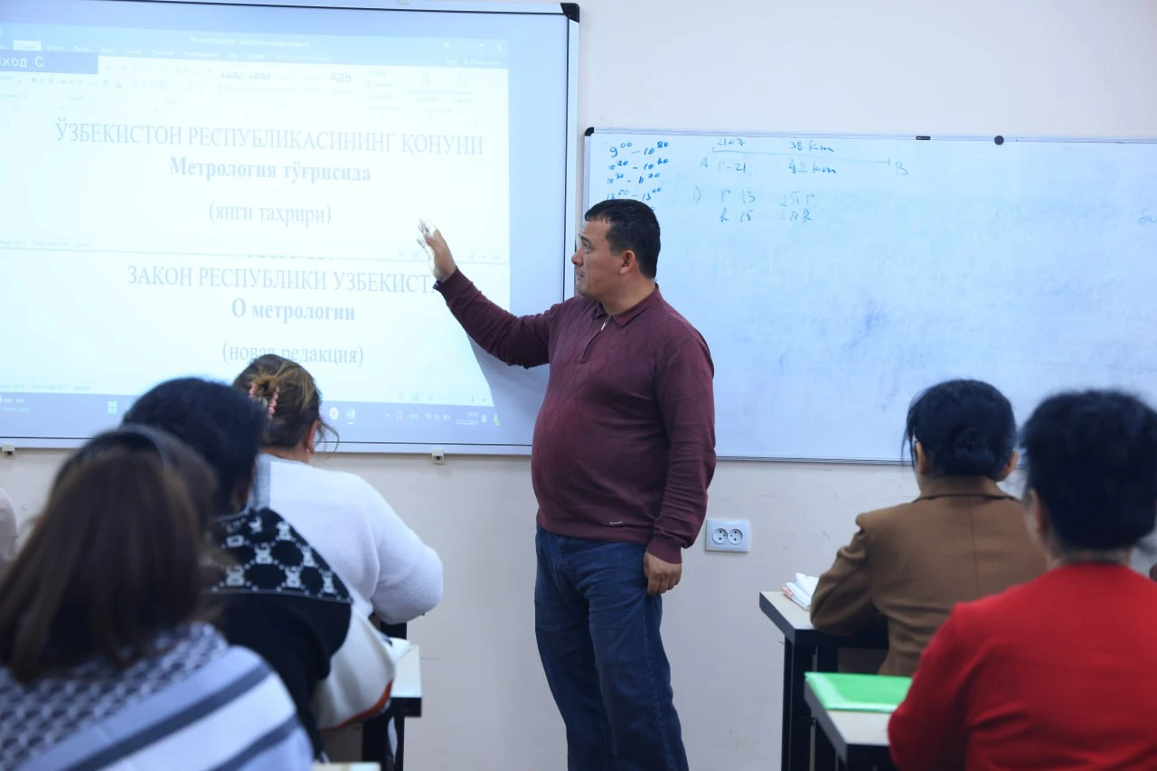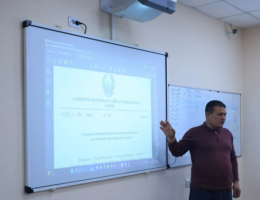 Тexnik jihatdan tartibga solish agentligining O'zbekiston standartlar instituti DM mutaxassislari tomonidan 27 nafar tinglovchiga mavzuga oid bilim va ko‘nikmalar berilmoqda.