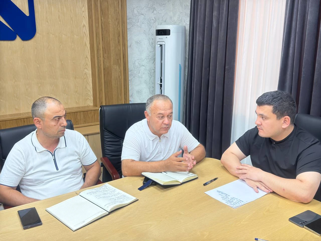 Ayni daqiqalarda korxona boshqaruvi raisi Farrux Samadov boshchiligida mutasaddilar ishtirokida yigʻilish oʻtkazilmoqda. Unda Oʻzbekiston ekologik partiyasi viloyat Kengashi raisi Alijon Jalilov ham ishtirok etyapti.