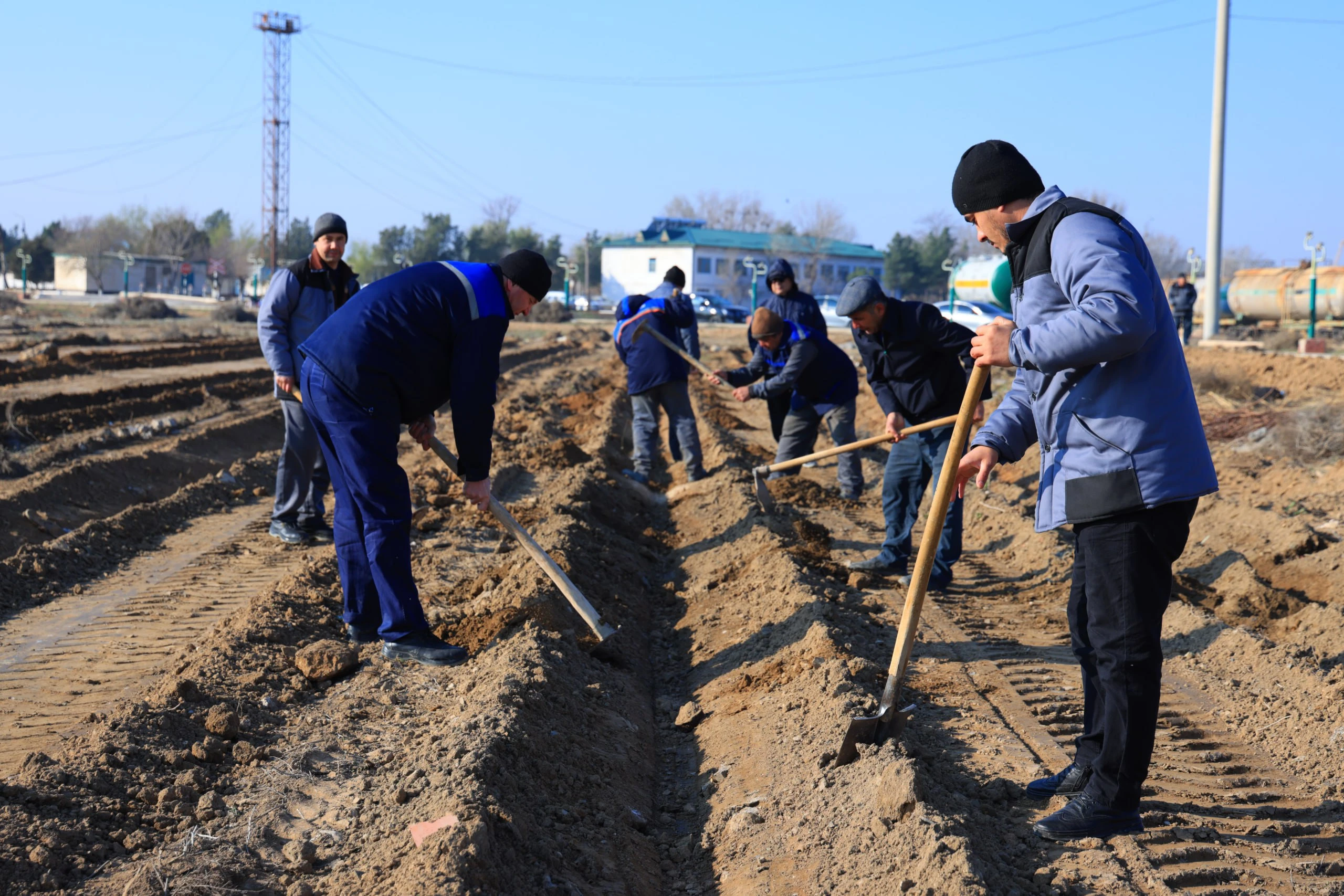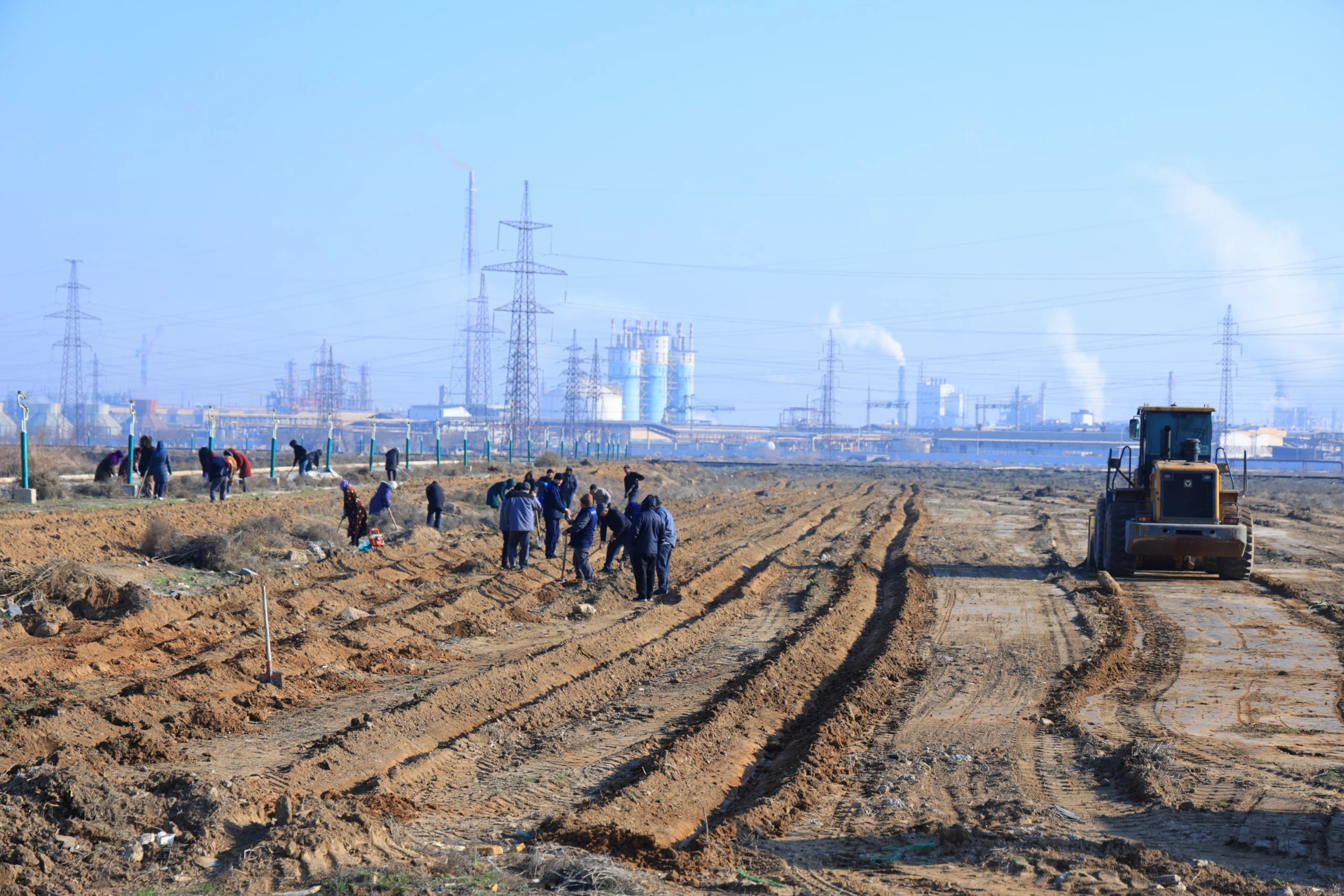 Кorxona atrofidagi 3,5 gektar yer maydonida tozalash ishlari olib borilmoqda. Manzarali daraxt ko‘chatlarini o‘tqazishga tayyorgarlik jarayoni avj pallada. Maxsus texnika vositalari, yuzlab soha vakillari ishtirokida maydon nihol qadash uchun shay holatga keltirilyapti.