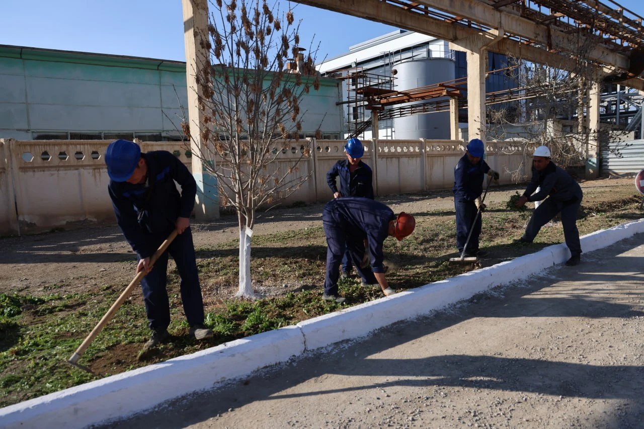 Bugun korxona xodimlari hududni yanada obod maskanga aylantirish, tozalash ishlarini amalga oshirish, manzarali daraxt ko‘chatlarini ekish tadbirlarida faol qatnashmoqdalar.